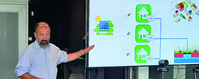 Ved at placere jordvarmeslanger på bunden af gadekæret, kan en varmepumpe hente lavtemperaturenergi, der opvarmer forsamlingshuset. Systemet er forberedt til udvidelse, så flere bygninger kan kobles på.