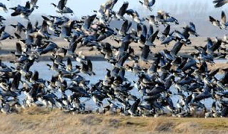 Med Mandøs beliggenhed og med Mandøs karakteristiske strandenge og enge spiller øen en betydelig rolle for bestandene af gæs i Vadehavet, og Bramgåsen er en af de arter, som man i perioder kan opleve i stort tal. Bramgåsen yngler ikke her, men er en trækgæst fra Sibirien og Østersøen, som fra september til maj er afhængig af gode fødesøgningsområder i vore kystnære landskaber. Foto: John Frikke ©