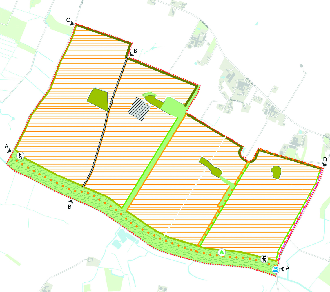 I den sydlige del af projektområdet, langs Ryå, er det planen at etablere et naturområde på ca. 44 hektar. Her vil der være afgræssede/ plejede engarealer med gode muligheder for øget biodiversitet – og rekreative sammenhænge i landskabet til glæde for dyr og mennesker. Stier, udsigtstårne, shelters og parkeringspladser er placeret i dialog med naboer og Danmarks Naturfredningsforening.