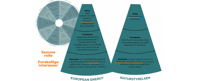 Processen hviler på en bred interessentanalyse. Her har kommunen, sammen med et konsulenthus, arbejdet med et Aktørhjul, der kortlægger roller, forståelser og interesser i relation til lavbundsprojekter. Det har dels hjulpet med at prioritere indsatsen, dels identificeret fælles interesser på tværs: