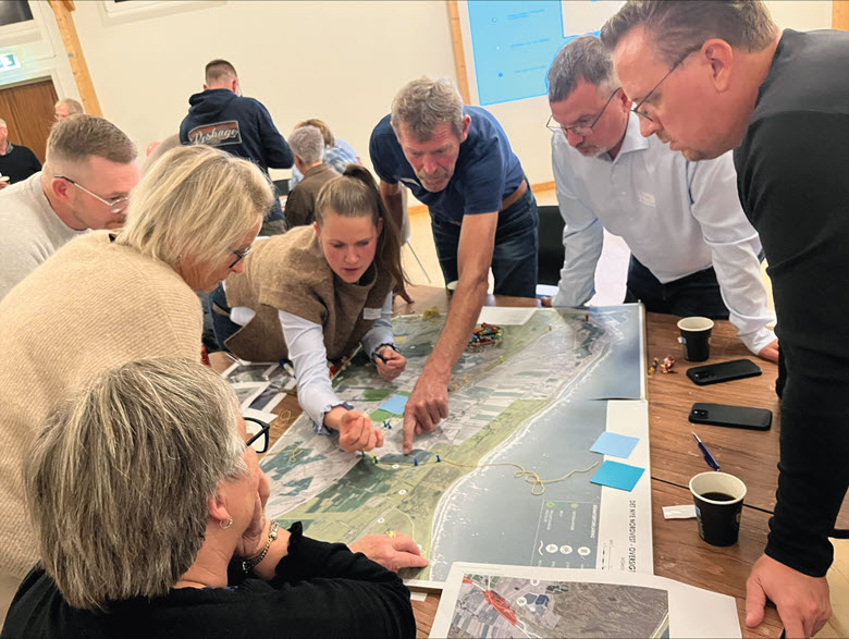 Lokale borgere og foreninger er samlet til workshop for at forme en udviklingsplan, der kan omsætte Grøn Pulje-midler fra et lokalt VE-projekt til lokal vækst og udvikling.
